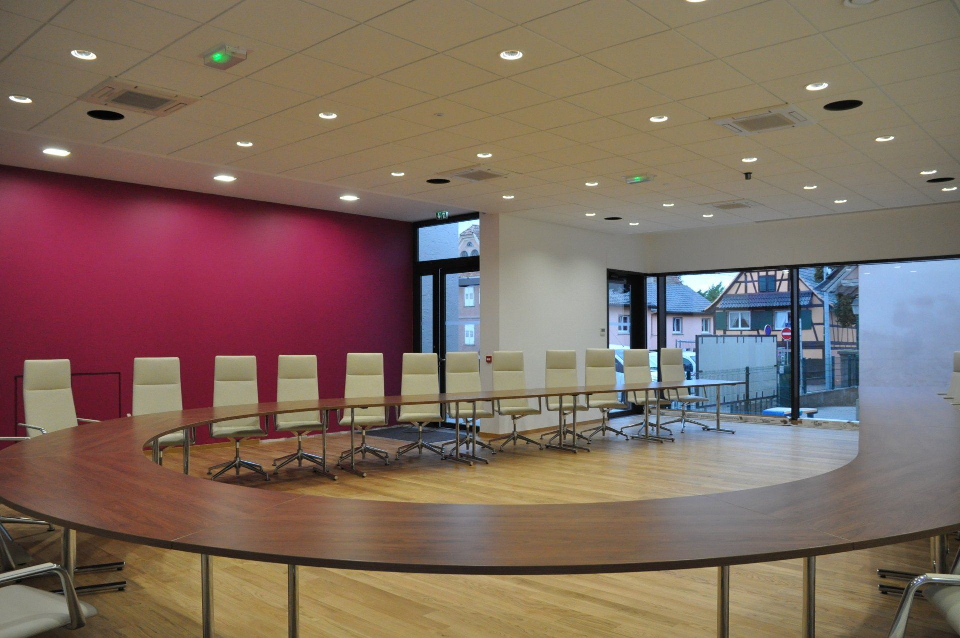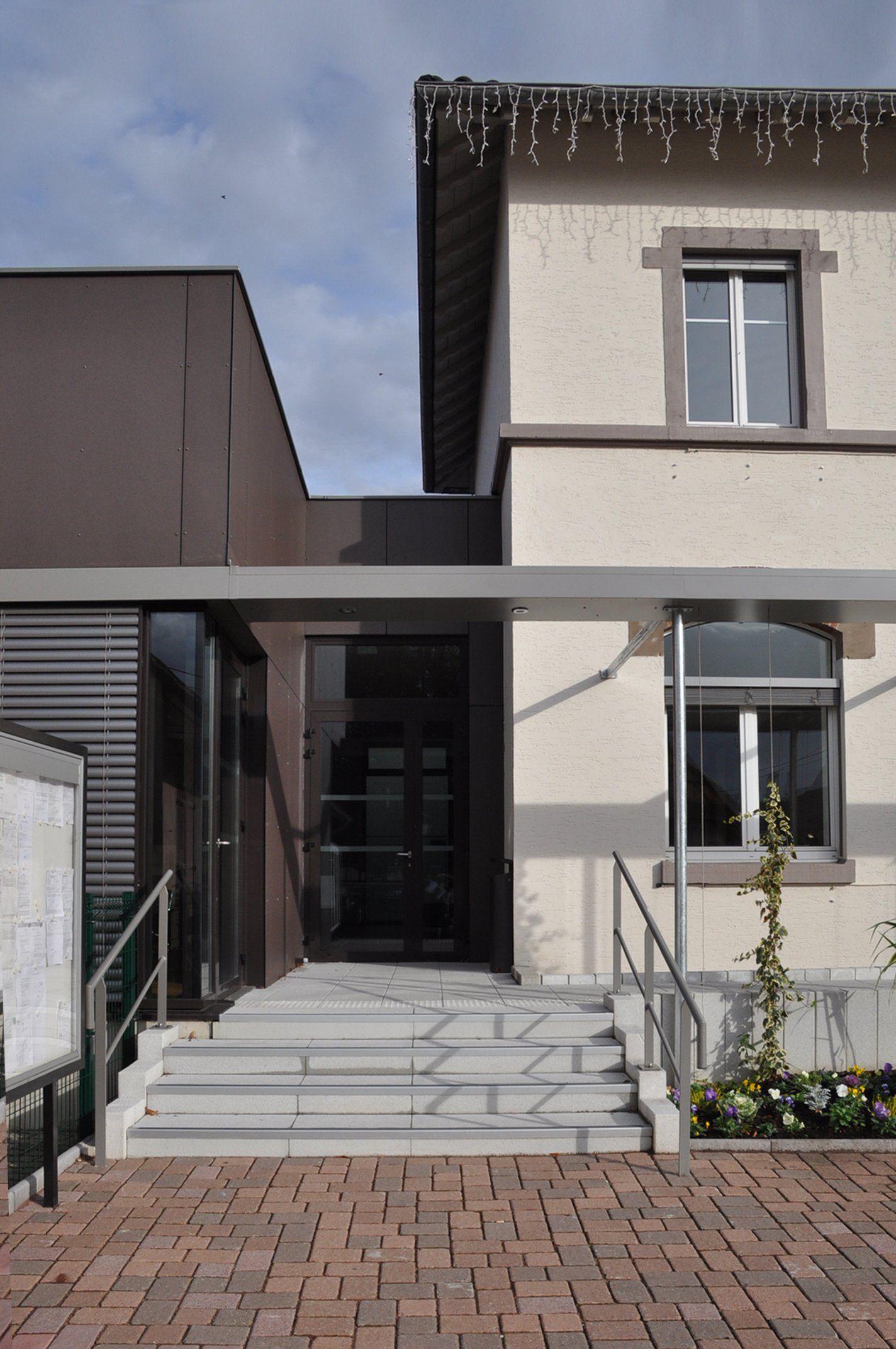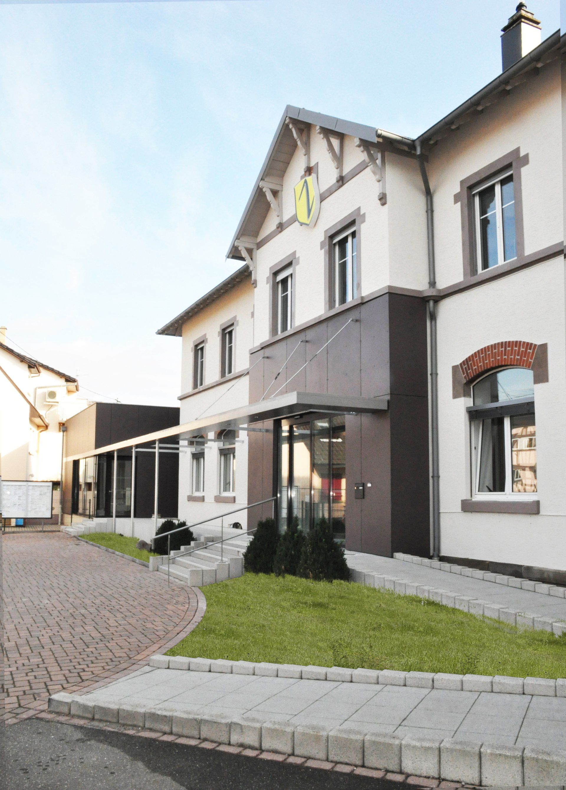 Le terrain est situé en plein cœur du village de Wolfisheim. Le projet a consisté en la rénovation et l’extension de la mairie, bâtiment datant du début du 20eme siècle. Ainsi, le rez-de-chaussée du bâtiment historique a été réaménagé, offrant une redistribution plus fonctionnelle et rationnelle des locaux accueillant le public, ainsi qu’une mise aux normes d’accessibilité. Une extension destinée à accueillir la salle des mariages et du conseil, a été réalisée en partie Nord, à simple RDC. Réalisée en ossature bois, elle est recouverte en façade de panneaux de fibrociment d’aspect minéral.