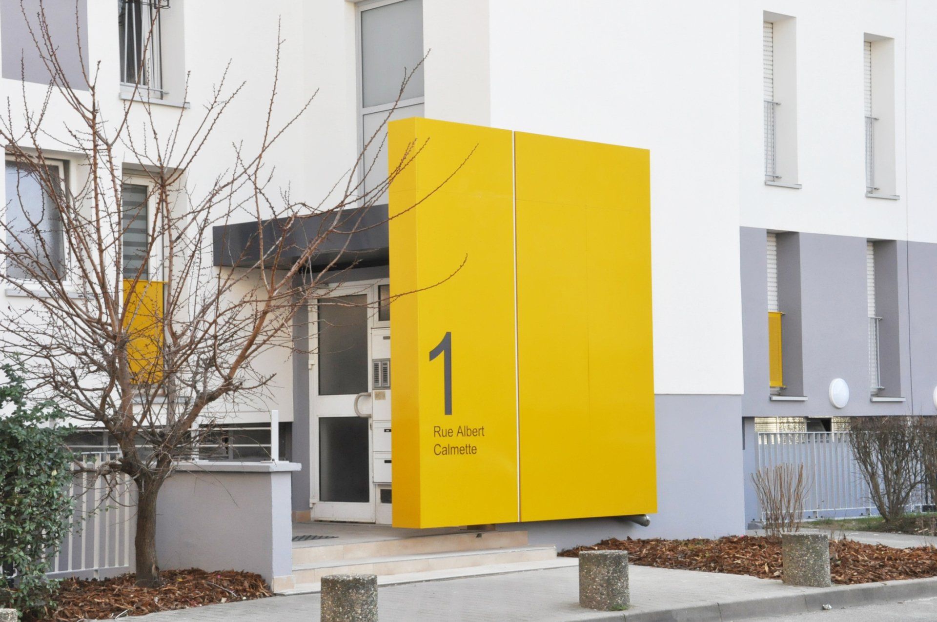 Un réaménagement complet du parking souterrain entre les 2 immeubles a été réalisé, comprenant la refonte totale de l’étanchéité du parking couvert et la reprise complète des espaces verts en surface. Le réaménagement des extérieurs s’est accompagné de la création d’espaces de jeux pour enfants et de jardins partagés pour les locataires. L’aménagement du sol, graphique, constitue un décor visible depuis les étages.