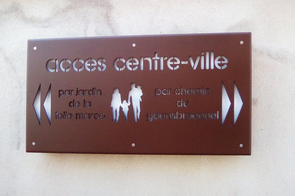 Une signalétique spécifique appropriée à la valeur historique du site a été mise en place sur les parcours piétons et véhicules.