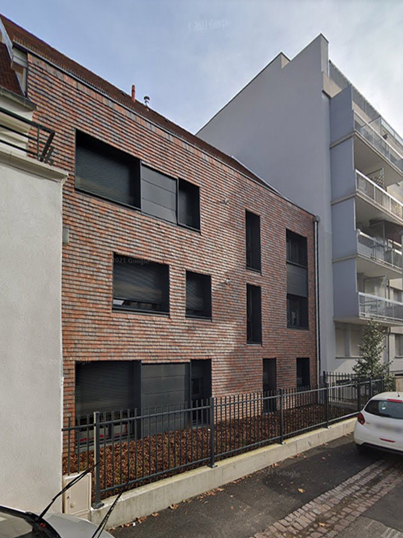L’existant était composé de deux ensembles distincts à R+1+C datant des années 1930. Les bâtiments ont connu des usages multiples au cours des années : activité de brasserie (La Perle), d’imprimerie puis salles de sports au RDC et logements aux étages. Les constructions avaient ainsi subi de très nombreuses transformations : constructions, démolitions, extensions qui génèrent des imbrications d’éléments structurels assez complexes. L’état général des bâtiments était assez vétuste et présentait de nombreuses dégradations, liées aux intempéries, à l’absence d’entretien ou au vandalisme. Quelques parties de bâtiment présentaient néanmoins un intérêt patrimonial certain : encadrement de baies en pierre ou pierre reconstituée, corniches, un oriel rectangulaire, un oriel en pointe, couverture à coyau, lucarnes, fenêtres en 3 volumes à croisillons.